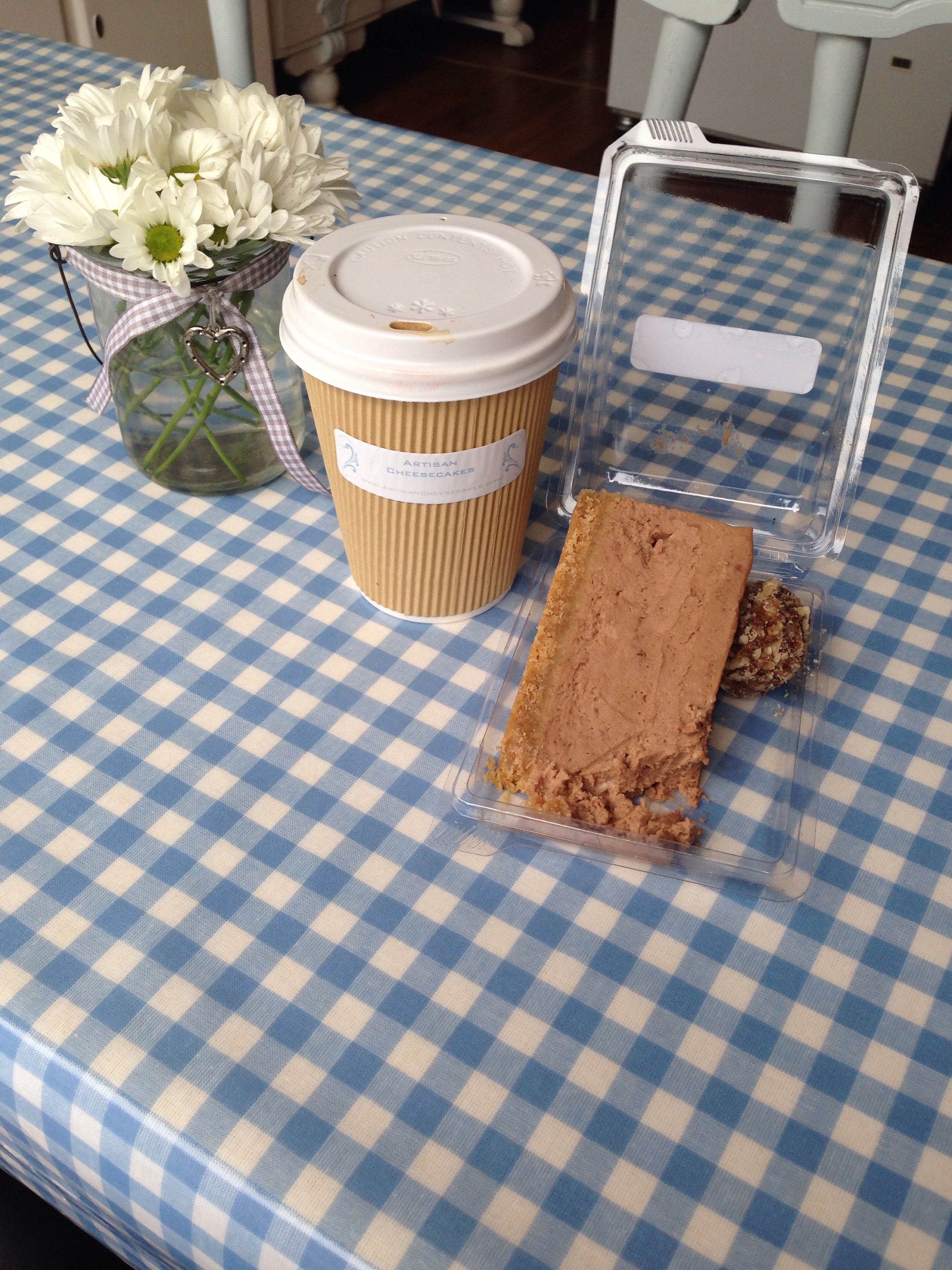I had eventually settled on the Amaretto Praline with a handmade truffle on top. It had a smooth creamy texture set on a lovely crumbly base I’d come to associate with Artisan’s cheesecakes. As a fan of cheesecake making myself, it was something I just couldn’t replicate in the texture of my cheesecakes! I needed a coffee combination to go with that so I ordered a latte.