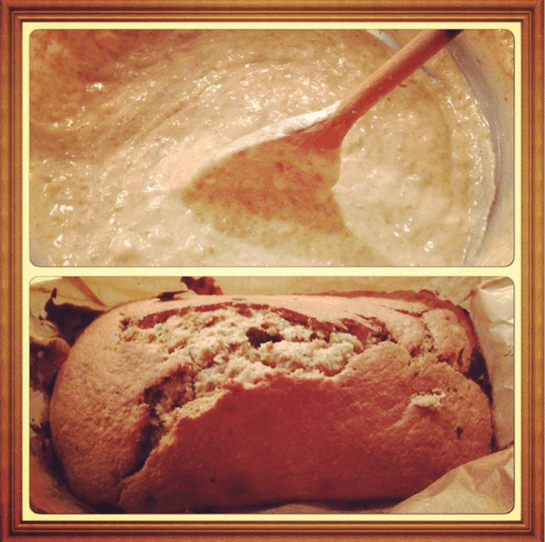 Up next was dessert, a cinnamon banana loaf. I wanted a healthier version so I used half wholemeal and half white flour to increase the fibre content (using only whole meal flour would have made the bread too dense). I also reduced the sugar content by approx 30g as ripe bananas have lots of natural sugar you can taste. I vaguely followed this banana bread recipe making my adjustments and adding 2 drops of cinnamon spice drops.