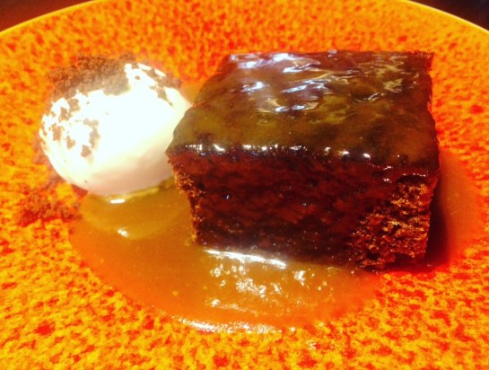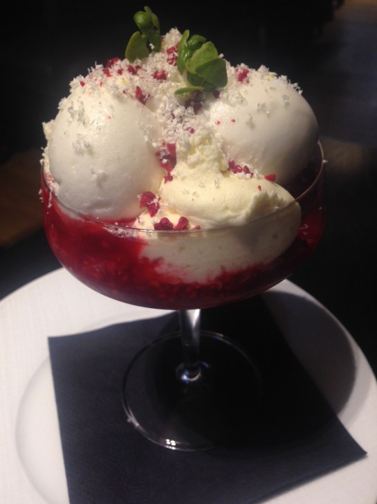 I had the sticky toffee pudding accompanied with all the good stuff- clotted cream ice cream and a butterscotch sticky sauce. Gavin opted for the Adamson sundae – White chocolate mousse milk sorbet, raspberries garnished with basil.