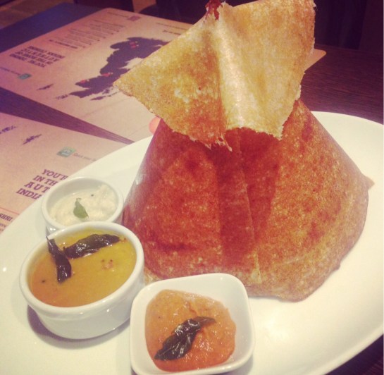Our next course was Dosa – which is a thin crispy savoury rice pancake served with an assortment of chutneys, my favourite being the coconut one, fantastic for ripping off and dipping into your chosen chutney.