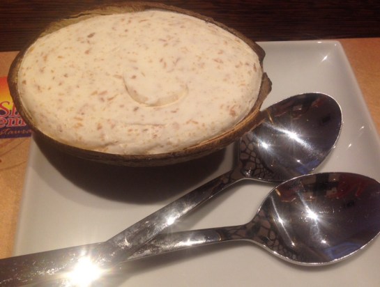 I love Indian desserts, gulab jamun is one of my faves but I also love this sweet carrot dessert that I’ve had in varying forms at Indian restaurants and lucky for me, Shri Bheema’s have their own version of ‘gajar halwa,’ as it’s known. My boyfriend had coconut ice cream served in a coconut, it looked very appealing and it was so refreshing after a big meal,I know this because I stole a bit while he was away to the bathroom!