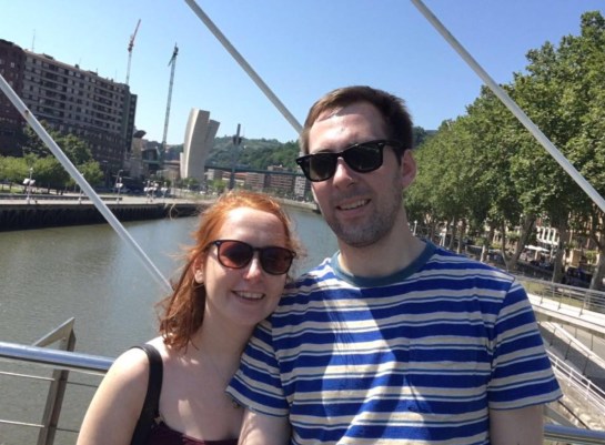 Our first selfie using the selfie stick! Whilst on holiday in Italy last year, it seemed everywhere we looked people had selfie sticks and we were missing a trick! Not so much here, Bilbao is not your typical British tourist haunt (which is a good thing). Nevertheless the selfie stick was a bit of a novelty so we snapped away. Bilbao is beautiful, the buildings and bridges’ architecture are stunning and the Guggenheim museum is just spectacular! We had a stroll around Casco Viejo (the old town) to take in the narrow streets, it was the weekend and there was a band performing in the bandstand which drew in a large crowd. The sun was beating down, it was 29 degrees!