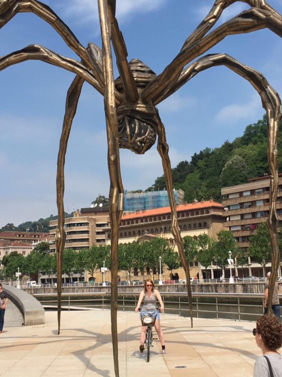 Everywhere you look the locals are sunbathing on the grass or just reading on a bench, Bilbao has such a relaxed atmosphere, maybe it’s all down to the sun but it’s slow pace is alluring. The highlight of our time in Bilbao was renting bikes and cycling around the city, we did this through Tourne bikes. The man who served us was really friendly, he had been to Edinburgh before and we talked about each of our cities. At the end you get to place a flag where you’re from – I noticed that no one from Perth, Australia had ever rented a bike from there! The city has designated cycle lanes you can travel on, we cycled to the Guggenheim, Bilbao’s art museum, then on to Casilda Iturrizar Parkea (a large park with fountains, a duck pond and cafe). We visited Azkuna Zentroa which is a cultural centre, lots of open space and study rooms and libraries which is perfect for some Sunday reading. We cycled over Zubizuri bridge and we also went up the funicular which is a red cable car you can go up to see great views right over the city. The breeze you get whilst cycling is unbeatable also.