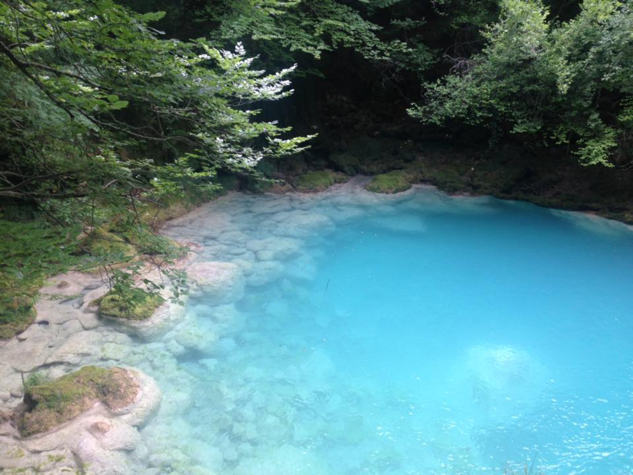 After all the excitement early morning with the bull run, we didn’t fancy getting drunk all day (we are pushing 30) so we headed to Nacedero de Urederra a beautiful national park with a gorgeous turquoise lake hidden in the forest. I was aware of this place due to this fantastic travel blog ‘Young Adventuress.’ The part of the park we visited seems to make up a bigger national park called Parque Natural Urbasa Y Andía which seems fantastic if you have more time or are a keen walker. We parked in the town Baquedano (photos above) we simply put the town name into our sat nav that we brought from home and it took us straight there! The link to Navarra’s tourist website allows you to book yourself into the park, there’s a quota per day of how many visitors are allowed. However I asked the hotel to book it for me as the booking form was all in Spanish! Also for me the parking attendant never checked but I guess it’s best to do it if you can. There’s a car park and as the place seems to be a bit more popular, this sleepy Spanish town seem to be reaping the benefits as the charge is €3 for parking which doesn’t seem too unreasonable.