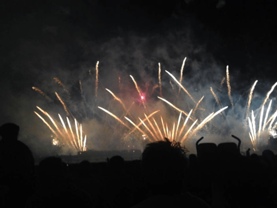 Our hotel in Pamplona was really fantastic, it was a little out of town with an underground car park for the car and it was adjacent to a shopping mall with eateries and many shops, including a massive supermarket with lots of fresh fish and lots of other items. Our hotel, ‘Hotel Zenit‘ put on a shuttle bus from 6am until 10pm all 9 days of the festival. All the staff were dressed in the San Fermín colours of red and white and you could buy merchandise there to get into the spirit yourself. We used the shuttle regularly. We went to see the fireworks that are on every evening of the festival, I had brought my picnic blanket with me from home so we plonked ourselves on there with a bottle of Rioja and some plastic cups and a bottle opener from the large supermarket I mentioned before. The driver of our shuttle bus mentioned that different fireworks companies put on displays every night and there’s a vote locally for the best display. It was certainly a fantastic spectacle. The only downside was getting home – the shuttle doesn’t come after 10pm and the fireworks start and finish after this time. There were so many people and no taxis about so we decided to walk back to the hotel. Our scariest encounter was with a fox on the path home!