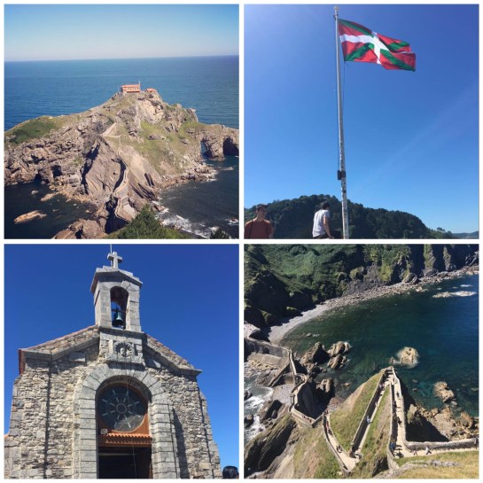 We’d attempted to go here when we left Bilbao for Pamplona but the mist and rain were horrendous, today was the polar opposite! This is another one I discovered via the ‘Young Adventuress‘ blog. It’s so easy to get here when visiting the places we did. We put the town of ‘Bakio’ into our sat nav (which also has an incredible beach by the way) and then just kept following the road before signposts appear for San Juan Gaztelugatxe. There’s a massive car park, we got there just before mid-day and we still got parked but about 1:30pm when we’d finished the walk (which is downhill then uphill then vice versa on the way back) the place was packed! There is a restaurant at the carpark and the walk for a fit young person is about an hour and a half round trip. The little chapel on the top was built in aide of John the Baptist and he is said to have set foot on the island. You can ring the bell at the top which in olden times was said to promote fertility and ward off evil spirits but today they say it is for good luck if you ring it 3 times. I loved it here.