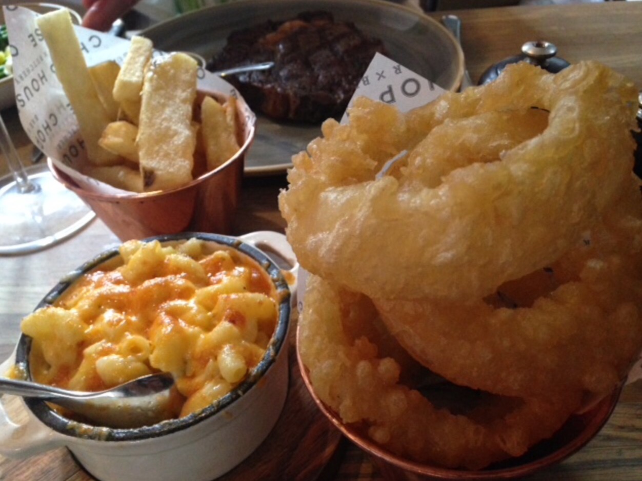 Then came the sides, we had an array of summer greens, chilli slaw, Mac ‘n’ cheese, two lots of crispy onion rings and dripping chips to mix ‘n’ match. I can’t tell you how happy I felt eating my medium steak with tasty sides, the food was just magnificent, you pay for what you get here and you get it at the highest quality I can’t tell you how much I enjoyed my dinner.
