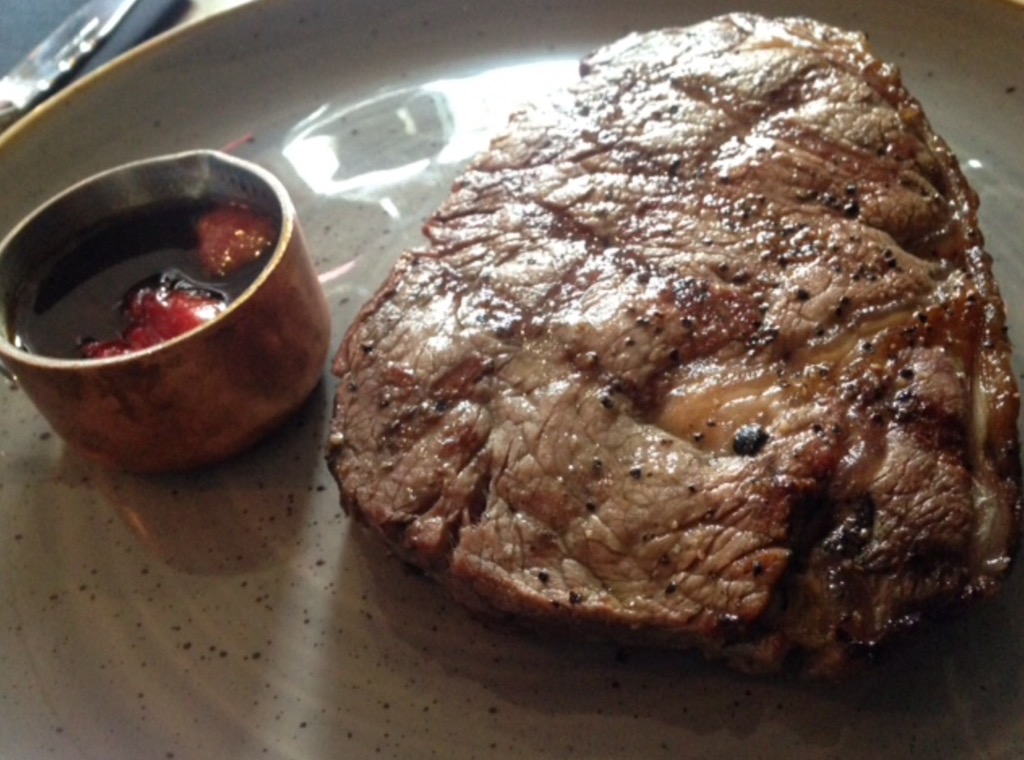 Both the above steaks are fillet but the top one was butterflied (cut in half) as the diner wanted a well-done steak and hence halving it allowed it to cook quicker so that all our food could come out together on time. The waitress that served us checked that that was ok to do first of all. The top steak is with the chimmichurri sauce, an Argentinian slightly spicy sauce made up of minced garlic, oregano and jalapeños that I’ve mentioned before when I went to Ranchos Steak House. The bottom one is the peppercorn of course with just the right balance of pepper and creaminess.