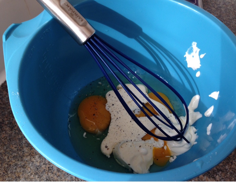 I like making my scrambled eggs in the microwave, I personally think it’s the best way, as childhood memories of my mum making it in a frying pan that was not non-stick resulted in black bits from the pan in my scrambled egg (don’t tell her I said that)! I start by putting the egg mixture into the microwave for 30 seconds (remember and use a microwaveable bowl) then the time becomes less and less as I beat with the whisk between pings. I like my scrambled eggs a little runny so I stop at that point before they become rubbery but I know some people prefer them drier. Make sure to give it a good beaten each time so that it is more scrambled egg like than omelette.