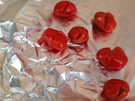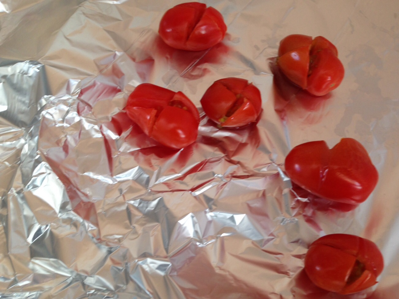 Scrambled eggs – I crack two eggs, a teaspoon of dairylea and crème fraîche , a splash of double cream, pinch of salt & pepper for seasoning then beat it altogether with a silicone whisk or fork. Meanwhile, score your cherry tomatoes with a vegetable knife and grill or roast the tomatoes (you can add a splash of oil if you like).
