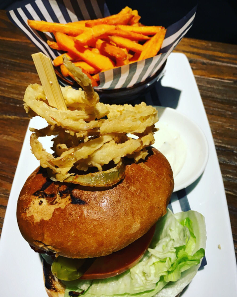 The food was full of flavour, and perfectly presented we were both really excited for our mains of Buttermilk Southern Fried Chicken stuffed with nduja sausage accompanied by sweet potato fries, apple salad and preserved lemon aioli. Initially I was told that it wasn’t available which made me want to have it even more! Any main meal which comes with sweet potato fries and aioli as standard is a winner in my eyes and I’ve loved spicy nduja sausage ever since I had it on a pizza at Taste Buchanan. Gavin was all about the Wagyu burger with crispy onions, tomato relish and again some sweet potato fries accompanied by aioli. Gavin is not a cheese fan and as a substitute our waitress offered him something else on his burger to take its place and Gavin opted for some chorizo, which was really accommodating of them.