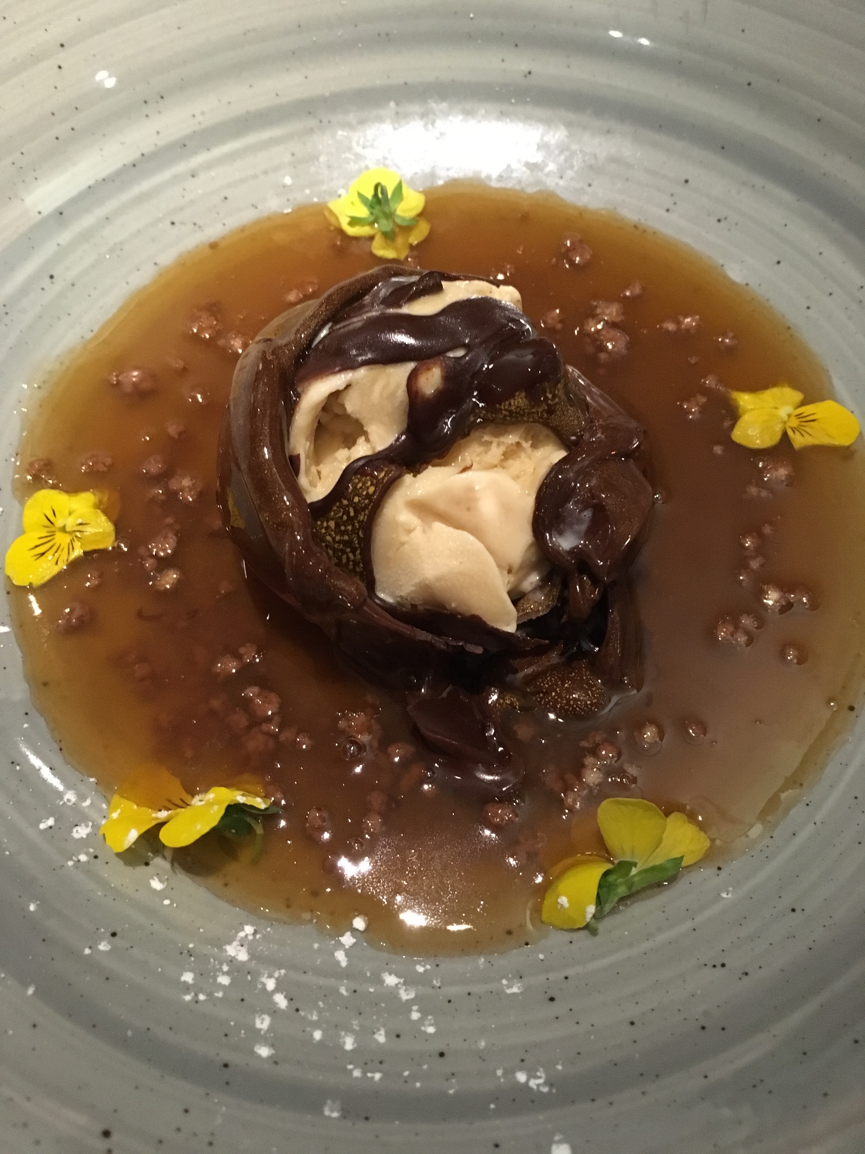 What a treat dessert was, the sticky toffee pudding was easily one of the best I’d ever tasted and you could really taste the sweetness of the dates coming through. The chocolate bomb was a really nice surprise and the edible flowers made the pudding look too cute to eat.