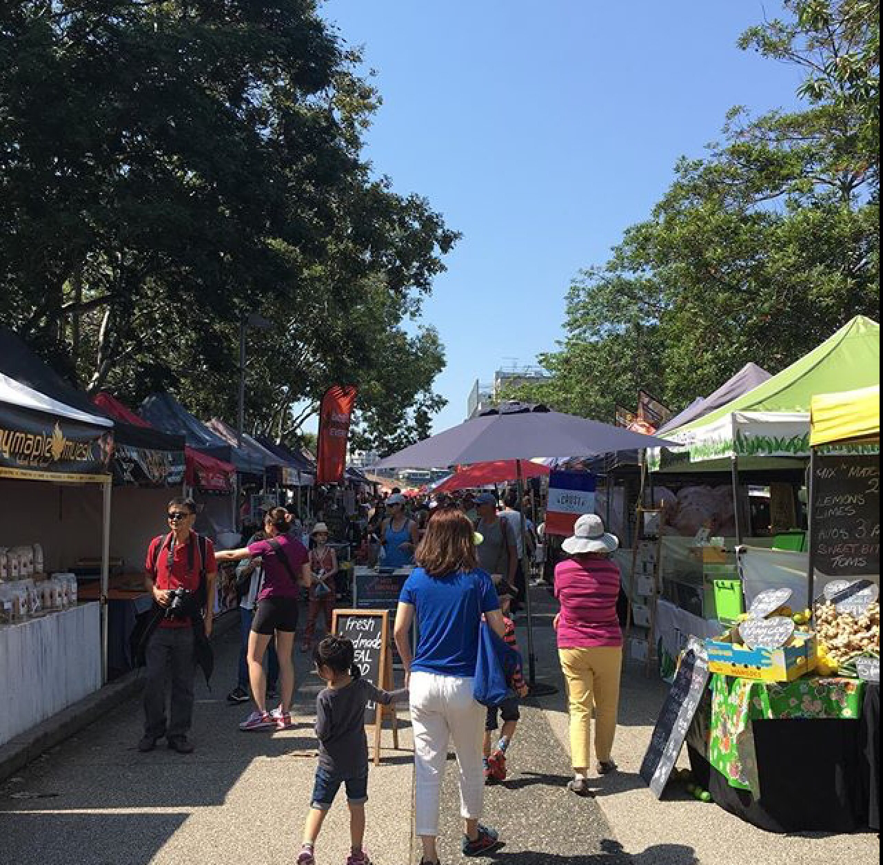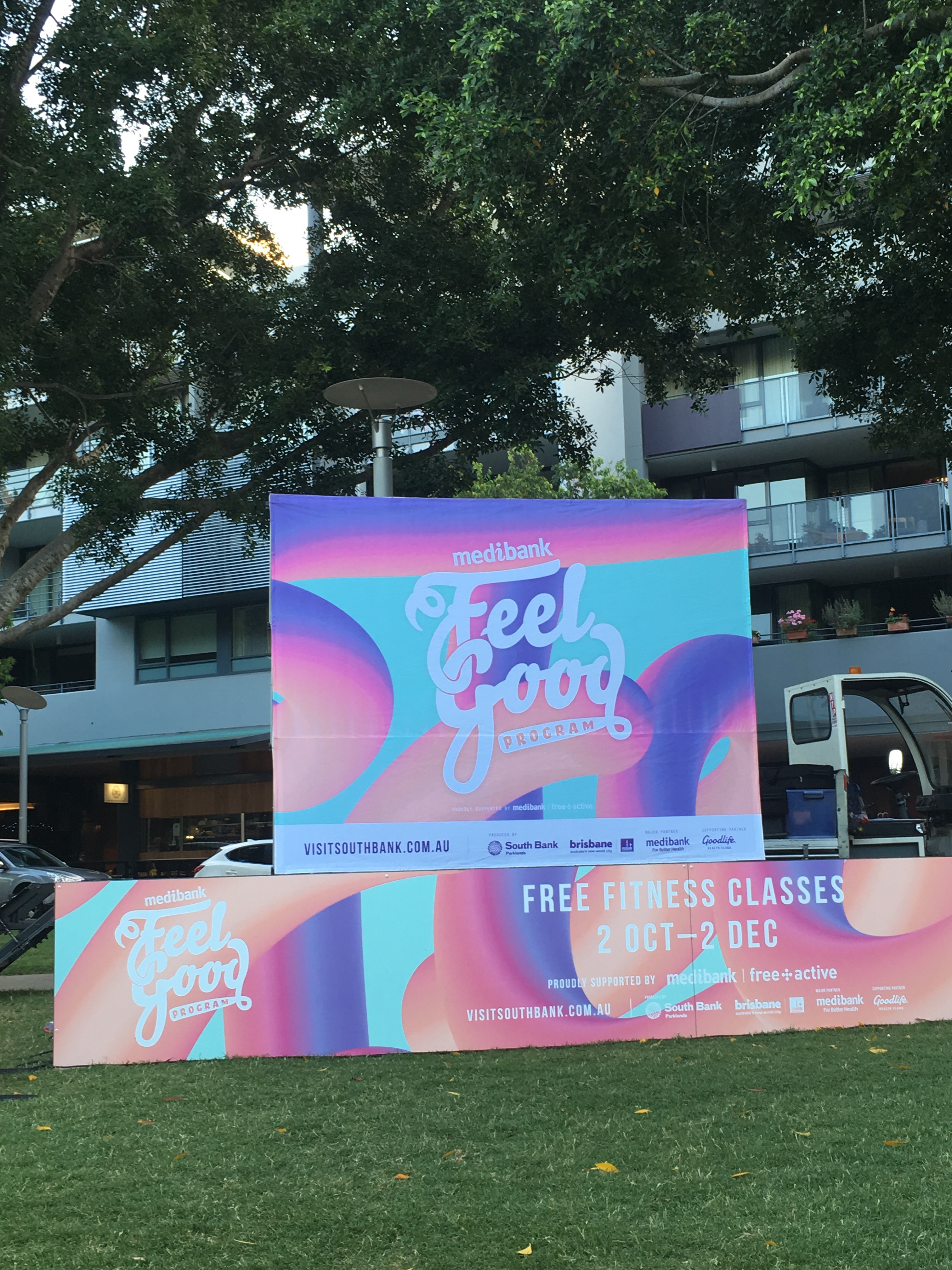 We’ve been making the most of the outdoor lifestyle that the weather affords you here, Gav and I have been using the gym and/or pool at least twice a week. There’s nothing quite like an evening outdoor swim to relax you after a day’s work. I’ve also been attending outdoor fitness classes which was something I really wanted to do whilst over here. South bank, Medibank, Brisbane City Council and Goodlife Health clubs have collaborated to provide free fitness classes from October to December at the little Stanley Street lawns at South Bank. Classes range from Yoga to Bootcamp to Zumba (which I took part in last Thursday). South Bank is an area in Brisbane where they have a man-made city beach called ‘Streets Beach‘ and lots of eateries and grass to chill out on on a sunny day (which is pretty much everyday)! I also attended a yoga class on Saturday morning in New Farm Park which is via the app ‘Meet-up’ which is good for introducing you to new activities and friends for free or a low cost. Having the ability to get outside is a great motivational factor in the quest to get fit! Gav and I then bought some fresh fruit, coffee and pastries at the Jan Powers market which is held every Saturday in New Farm Park.