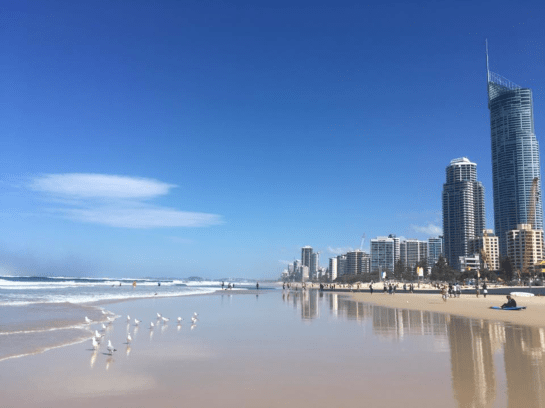 On the Sunday we went to Surfers Paradise down in the Gold Coast, south of Brisbane. We’ve made the decision at the moment not to buy a car because of our central location, so we get everywhere via public transport and we’ll hire a car as and when we need to. We took the train to the Gold Coast and there were quite a few others doing the same. The local 740 bus then meets you at Nerang station and its approx 20 mins to Surfers Paradise from there. A lot of people have told us that the Sunshine Coast is better than the Gold Coast but we wanted to experience the cliché of Surfers Paradise just to say we’d been there (we’re actually heading back to the Gold Coast for Christmas to spend it with my friends who live in New Zealand). There are theme parks down there that a lot of Queenslanders recommend doing. We had a nice day just chilling on the beach with a picnic and we set off early to make sure that transport tied in.