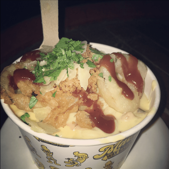 The time had come for me to be transported into Mac ‘n’ Cheese heaven. We were dead set on a Mac ‘n’ Cheese bowl, there are currently four to choose from: Original, Get Cheezy, Bacon Bowl, or Chicken Parmigiano. I just had to have the bacon bowl, a tasty Mac ‘n’ Cheese mix of bacon, fried onion rings, BBQ ranch and panko crunch. Tilley is vegetarian and she chose the Get Cheezy – Mac ‘n’ Cheese topped with fried halloumi mixed with sun dried tomato, basil cream and panko crunch. It looked equally as good as mine!