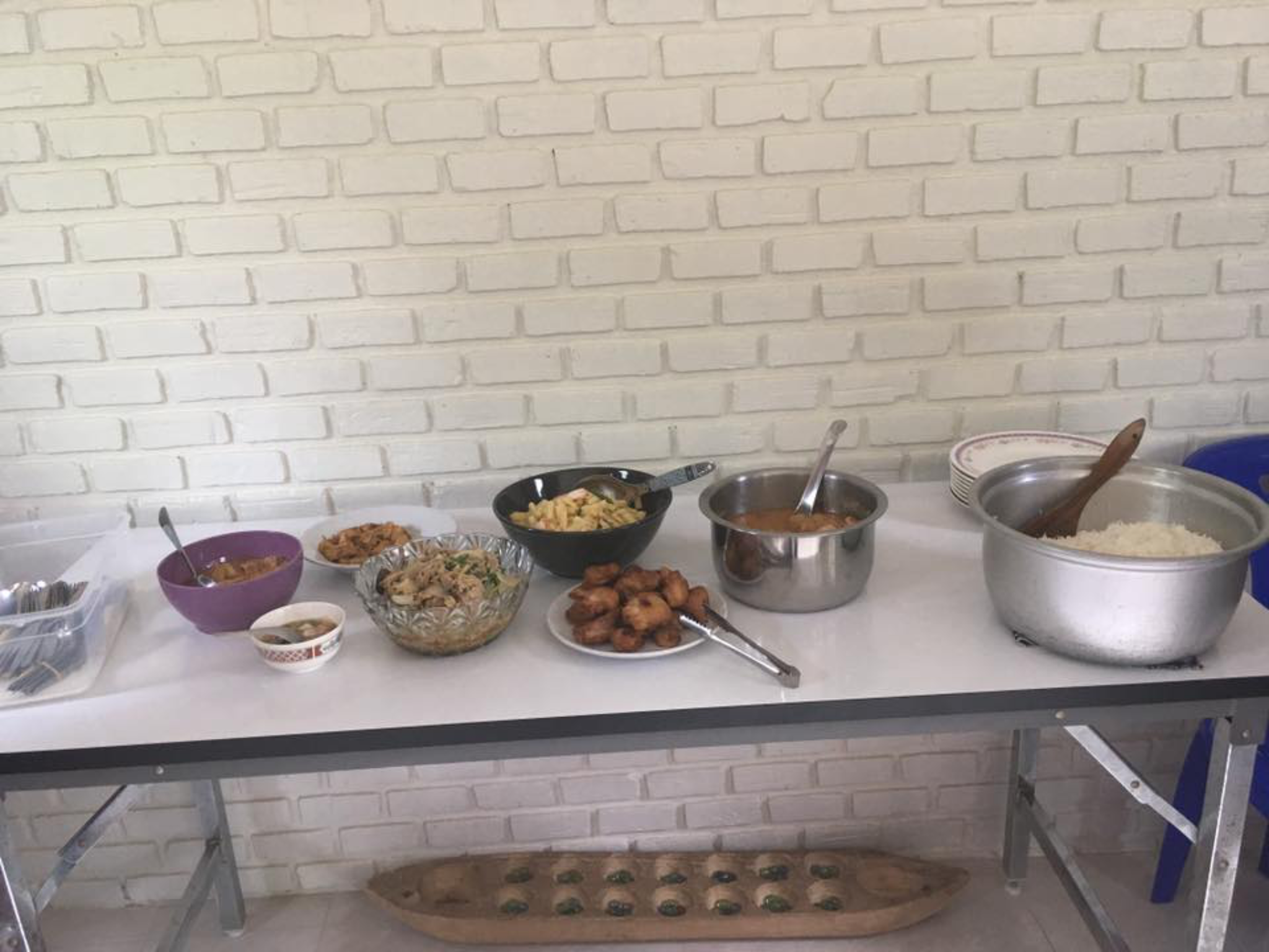 Today we met Nok’s mum and dad as Nok is from Sukothai, they have a museum in their house and they make jewellery from popped rice blocks, when polished with sand paper they become black and shiny resembling an onyx. We set off further up north to our home stay destination. We took a mini-van for the best part of the day and I had a really nice iced coffee from a Thai chain called Amazon. Most of the day was spent in the van with air-con blasting. We ate lunch at a really nice stop, originally I wasn’t hungry but I had a small portion of chicken and cashews with rice and a pineapple smoothie which was so refreshing. We stopped off at the ‘Friends of the Asian Elephant Hospital’ which is the first elephant hospital in the world. They do great things there to help elephants who were once used for elephant riding and entertainment and they support one of the elephants who lost her leg due to her stepping on a land mine. Prosthetic legs have been made for her and we got to learn a bit about the good work they are doing in the hospital near Lampang in Thailand. When we arrived at the home stay we were met by Aoi and her family. Most Thai houses are on stilts where they sleep upstairs and people often work from their home in the open-plan environment. We had some time chilling out and checking out our shared sleeping space which had lots of fans which was perfect as it was so hot! The evening meal and entertainment that Aoi put on for us was incredible. First of all we got a mini cookery lesson from Aoi and her daughter Amy on how to make the perfect accompanying curry paste to a minced chicken dish which involved using the pestle and mortar to crush up all the ingredients. Our home cooked meal that they put on for us consisted of meat and vegetarian delicacies, the tempura pumpkin was to die for as well as an egg dish in curry sauce and the rice cakes for dessert (called khaotan) were delicious to finish, all the while we were entertained by Amy and her family, there is nothing that girl can’t do! We had music on the xylophone, an instrument with 2 strings similar to the violin and the wee boys were playing guitar. We got the chance to have a go on the instruments ourselves and we received a mini Thai massage each from Pa-Tong which means aunty in Thai. We were then treated to some dancing by the young girls where they wore the most beautiful traditional outfits and the young boys did a sword dance for us. We were looked after well and we were all really hot and tired, so most of us had a ‘Thai style’ cold shower before bed. We all had mosquito nets above our beds that we tucked in under our mattresses on the floor. We heard some interesting noises in the night, when described to Nok she said it was an insect similar to a cricket called a cicada.