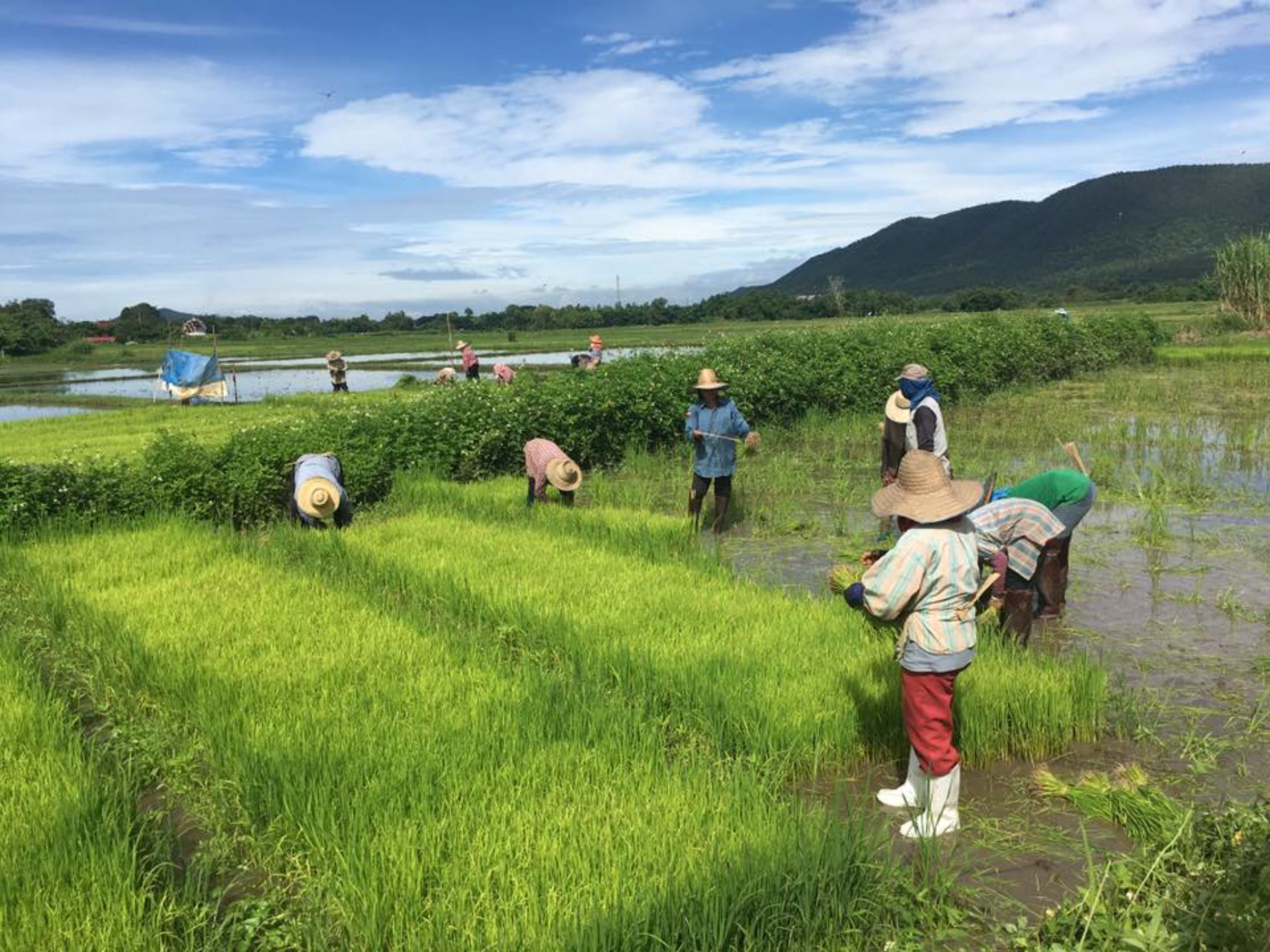 Today I braved another cold shower ‘Thai style’ and then tucked into the lush spread of food our home stay family had prepared for us – French toast, dragon fruit, pineapple, watermelon and fried rice. We then set off on a cycle around the rice fields, learning about how rice is made along the way. We stopped at Pa-Tong’s house (who gave us our massage the night before), she demonstrated how to separate the rice grain from the rusk and we all got to have a go trying out the man-made machine that they use and the circular instrument they shake to speedily get any loose bits of rusk off. We then cycled to meet workers in the rice fields and the hilly scenery was glorious to cycle through, I had many a pinch myself moment.