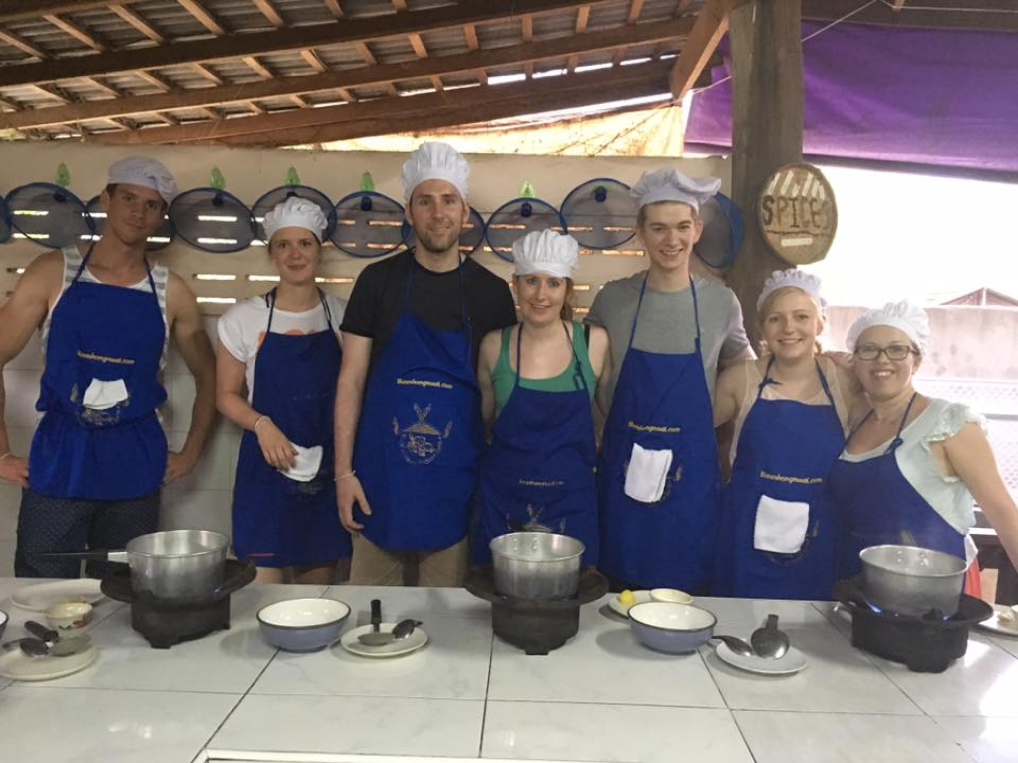 We went to Baan Hongnual Cookery School and I loved the set-up. We each had our own work area and individual cast iron gas hob for our pot and wok. We were making a coconut chicken soup, a choice between Pad Thai with prawns or chicken, either Massaman chicken and potato curry or Thai green curry with aubergines and we all observed the melon and sweet sticky rice being made, with palm sugar adding most of the sweetness to the sticky rice. Gavin and I each went for the different Pad Thai options with me choosing the chicken and I chose to make the Massaman curry. Little did I know though, that in Pad Thai, dried shrimp is added and they still have their tiny black eyes which just totally put me off so our teacher allowed us to grate carrot to give the same orange effect! The cooking class was the best thing I’ve done so far on the trip and we got a recipe book each to take home which I can’t wait to use at home and in my future home economics lessons.