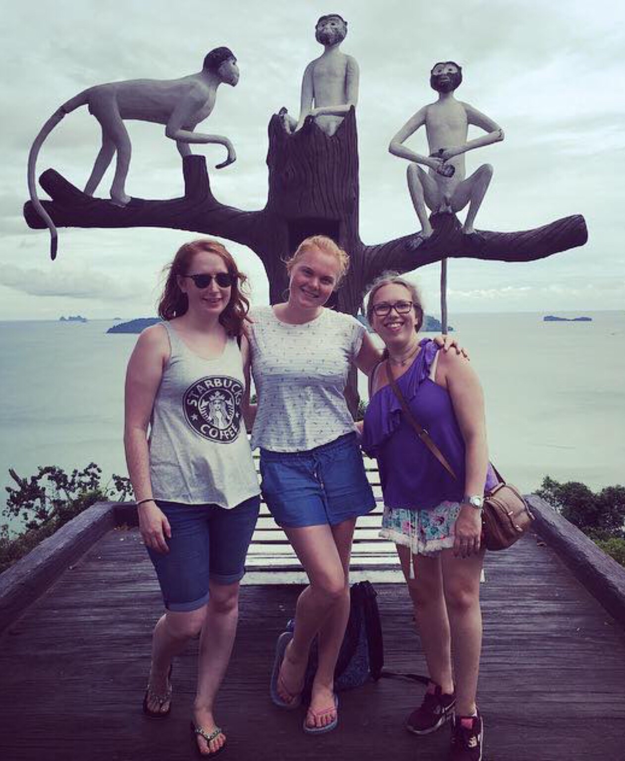 Nok, however had bought some fried banana which I couldn’t get enough of, they were so moreish! The viewpoint was really lovely and we got to have a nice group photo together and Sarah, Freddy and I posed beside some monkey figurines with the islands in the background.
