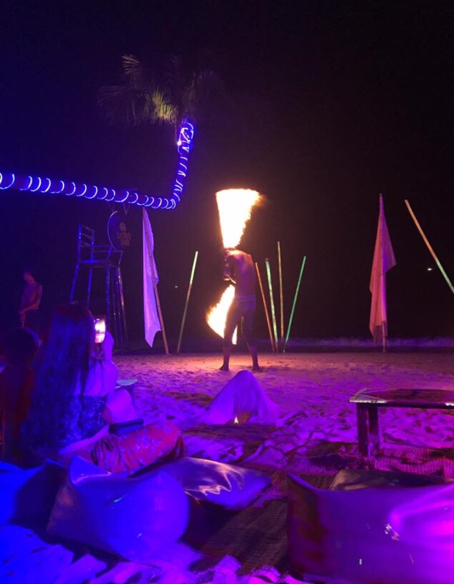 Koh Tao’s sunset was absolutely breathtaking and the majority of us headed to a fire show on the beach. It was a really chilled out evening with cushions to sit on and little tables. Some people in the group even took part as volunteers in the fire show!