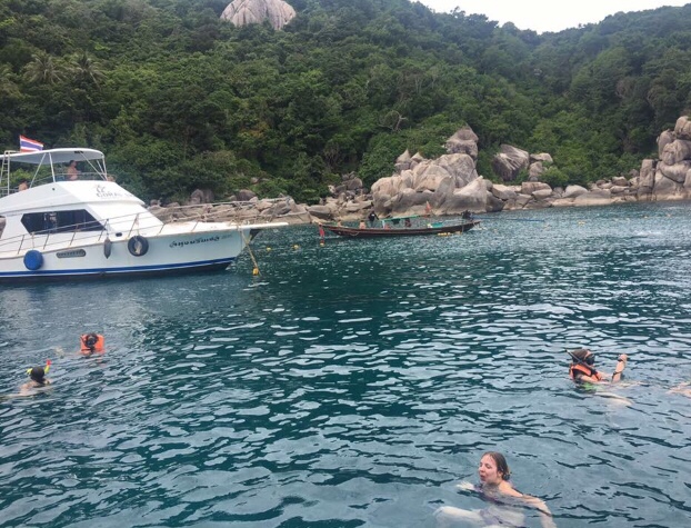 On route back to Koh Tao we stopped at Nang Yuan Island, Gav and Becs headed up to the lookout point whereas Sarah, Anna and I just chilled with a drink. Once back on the boat, the sea began to get really choppy and the boat was rocking from side to side with water splashing on to the deck, everyone began putting life jackets on and there was a real sense of fear in the air. I’ve never been so happy to see dry land!