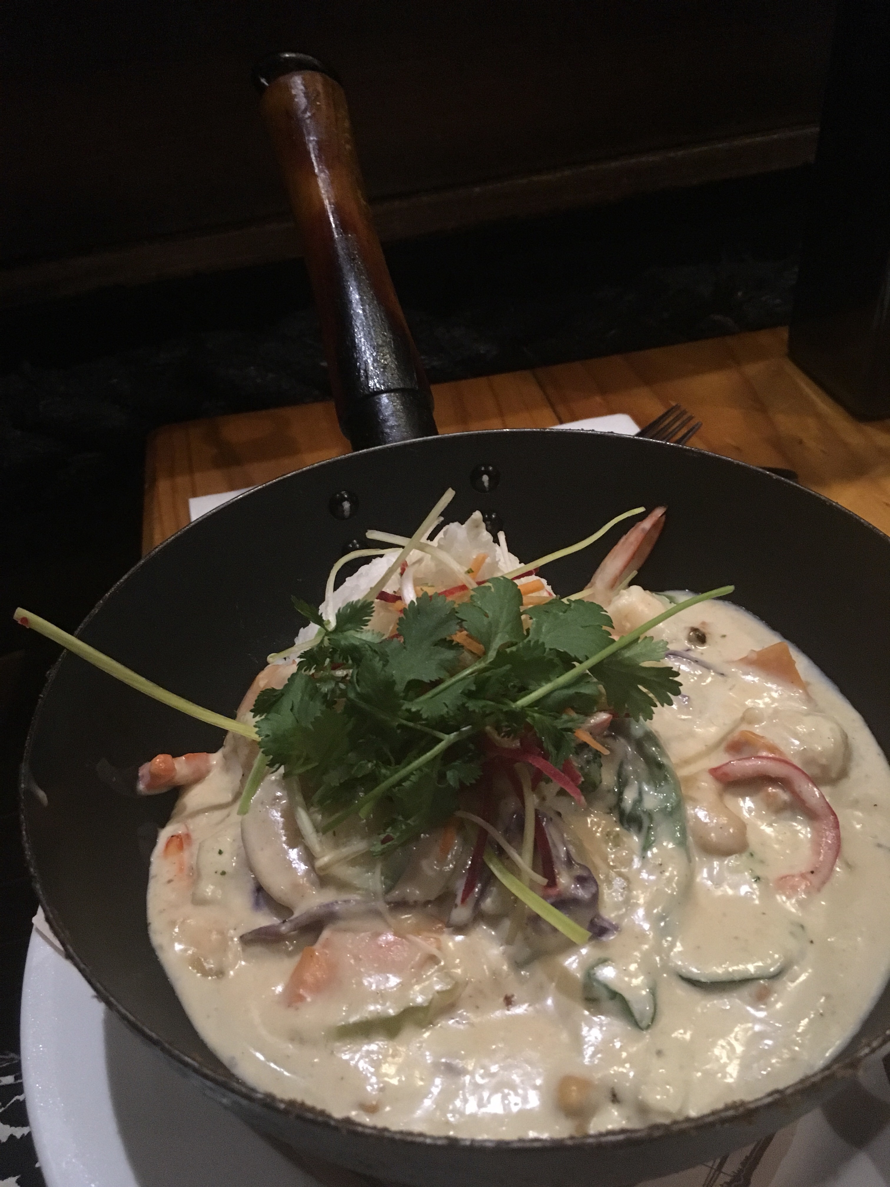 The Drunken Admiral on Hobart’s waterfront had been recommended to us. On entry to the restaurant, it was kitted out like a functioning ship. As I’m not the fishiest of people, I was a little nervous that there wouldn’t be something that I’d like on the menu. However they do cater for non-seafood lovers. There’s steak and chicken dishes to choose from and the most luxurious fish and chips for those who are partial to white fish in batter with chunky chips. I surprised myself nonetheless and dived straight into The Sultan’s Wok Pot, a Thai inspired cashew satay prawn & scallops curry served on top of steamed rice in my own little wok. Gavin had Yachtie’s Seafood Mixed Grill, 4 different types of seafood served on sizzling skewers. We washed down our beautiful meal with local Tasmanian wine and Hobart Brewing Co beer. The restaurant is extremely popular so booking is recommended.
