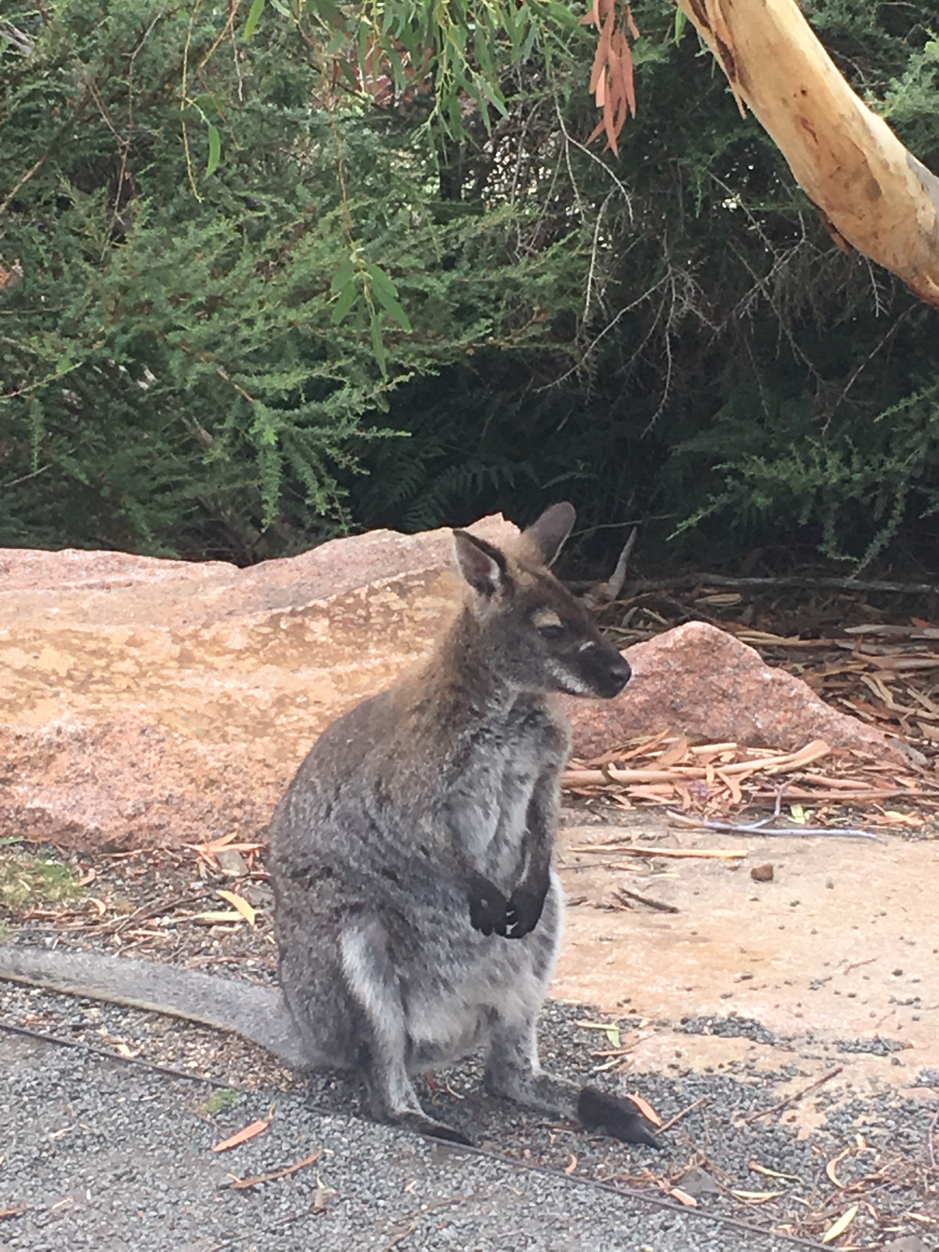 Freycinet National Park encompasses many walks for all fitness levels. We did the most popular walk up to the viewing point for wine glass bay which only takes approx 1 and a half hour return trip. We had been buying sandwiches from bakeries and coffee shops to eat on our excursions which proved to be a good plan as we could just eat when we felt hungry. As we were leaving we spotted a wallaby in the car park, he didn’t seem scared, he was very placid, allowing some other tourists to get up close to him to pet him which I wouldn’t be doing to a wild wallaby. Nevertheless he was very cute.