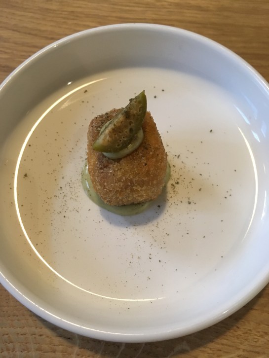 I was fortunate to be invited to try their Aperitivo menu (priced at £35.00 per person) which included a glass of spritz, canapés and 3 suitably portioned courses. MONO is a progressive Italian fine dining restaurant situated on Edinburgh’s South Bridge, conveniently minutes away from attractions such as Edinburgh’s popular Royal Mile and The Festival Theatre. In Italy, Aperitivo is a light dinner and drink after the workday, so the 5pm – 6:30pm menu is perfect for when the working day is done and I myself came straight from work. The spritz was beautifully presented in a tinted orange glass with eco-friendly (but equally classy) metal straws, it was the perfect refreshment to start.