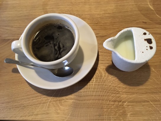 Dinner was followed by a smooth Italian coffee with the cutest coffee speckled milk jug and a look around downstairs at the open kitchen and dining facilities down below. There is the option for private dining and the view out to the Cowgate was really lovely as the sun began to set on the festival goers that evening.