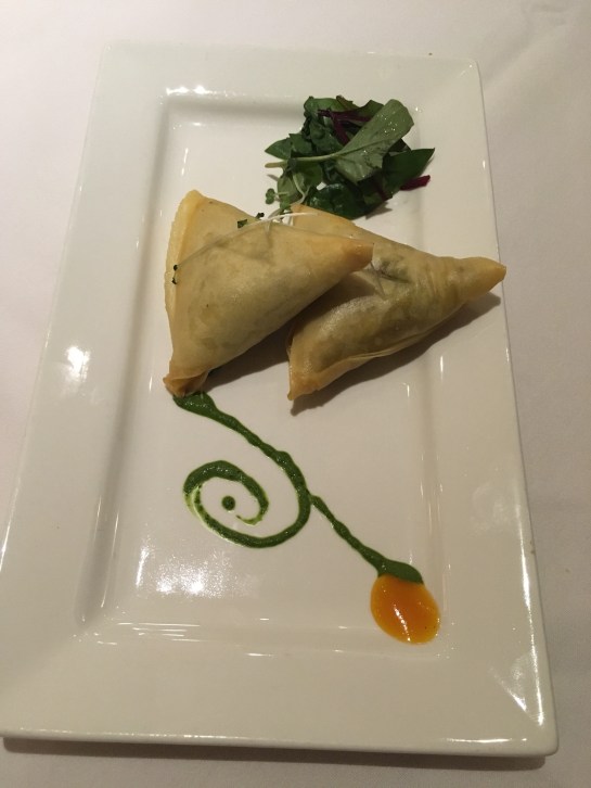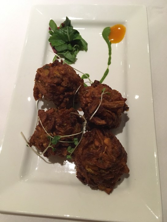 Like any good Indian restaurant, we started with some crunchy poppadoms and an assortment of mango & mixed pickle chutney, onion salad and a mint yoghurt sauce. We decided to go for 2 starters and share them; the lightly spiced mince lamb samosa accompanied by more of the mint yoghurt sauce and the Sabzi (vegetable) pakora which I just can’t resist when eating Indian food. This was served with a slightly spicy pakora sauce that was a little darker in colour than I’m used to seeing, but never the less delicious.