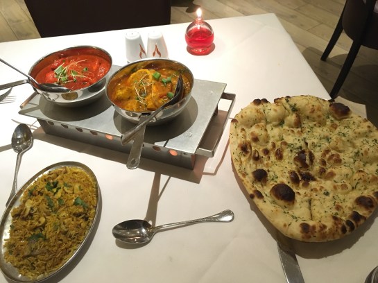 We decided to choose 2 curries that we both liked so we could do a little bit of mix and match. Come to mention it, the restaurant actually do ‘Tapas Tuesdays’ so you can try a little bit of everything, if you have trouble just sticking to one curry like us. We agreed on the Shahi Chasni – Chicken kebabs cooked in a delicate sweet and sour sauce with fresh herbs & spices. We also went for the Garlic Chicken – medium strength, cooked with garlic, lentils, fresh herbs and spices, garnished with coriander and lemon.