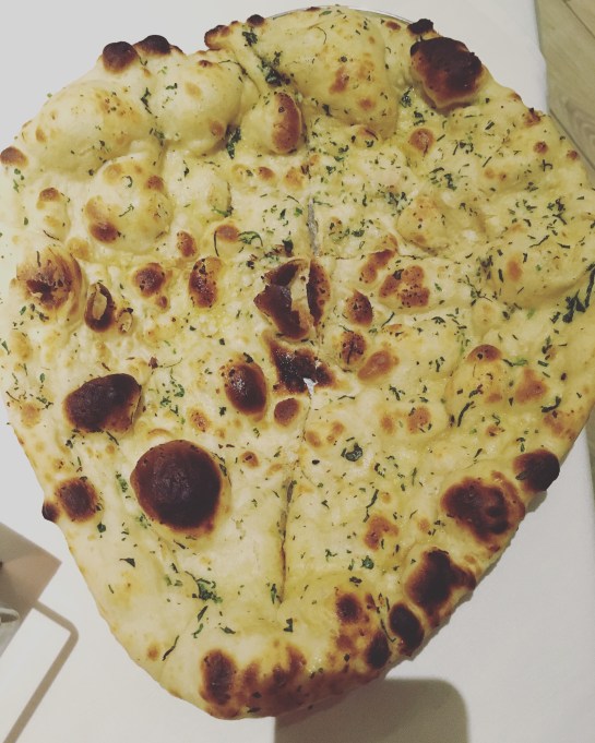 We chose to accompany our curries with some mushroom pilau rice and a giant garlic naan which was incredible but it ended up being too big for us to finish!