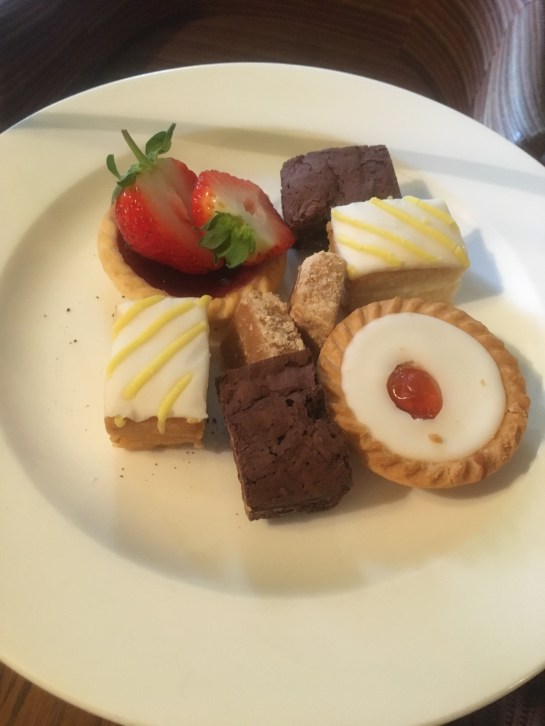 My mum had mini chocolate brownies, lemon drizzle sponge, strawberry tart and tablet – delicious!