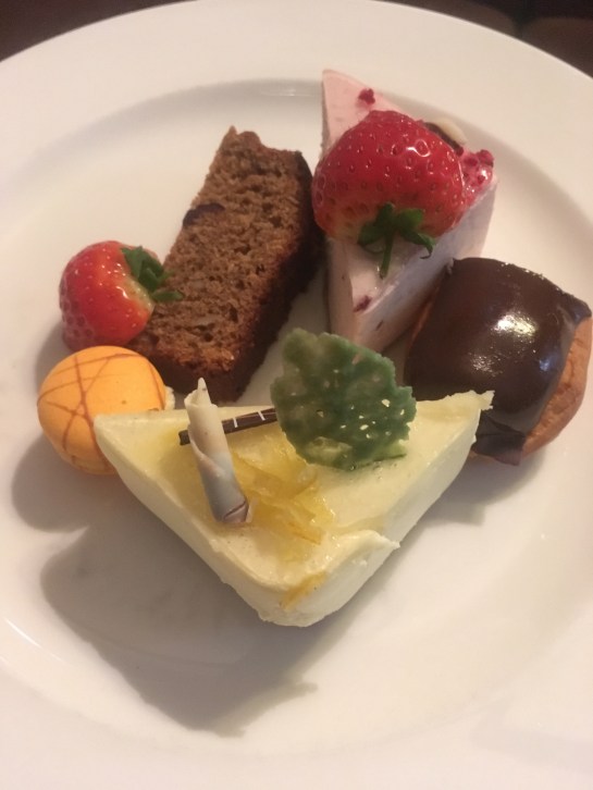 My cakes were good but I honestly think my mum’s were better! I had a mini éclair and a mini orange macaron and 2 mousse citrus and strawberry cheesecake type cakes that weren’t really my type of cake but I’d brought a Tupperware takeaway box to take some cakes home for my step-dad!