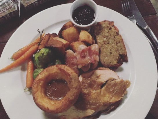 I went all out and ordered the traditional turkey Christmas dinner with all the trimmings as I normally eat beef on Christmas Day. It was a mammoth portion but hey it’s Christmas after all! The turkey wasn’t dry like it sometimes can be, the cranberry sauce was a good addition to all the yummy flavours on my plate. I liked the Yorkshire pudding filled with gravy and the baby carrots, the pigs in blankets and the stuffing too! I found the sprouts a little on the crunchy side but not offensive, it’s difficult to perfect the seasonal sprout, I equally hate mushy ones so maybe I’m just a tad fussy!