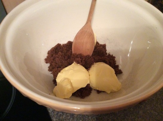 Stage 1 – Mix the butter and brown sugar until amalgamated.