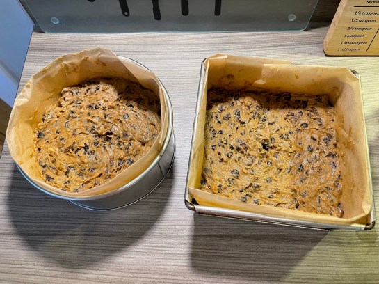 For the 6 inch tins, the recipe is enough to fill both of the tins. Make a slight well in the middle of the cakes and place the cakes in the centre of the oven and bake for approx 1 1/2 – 2 hours.