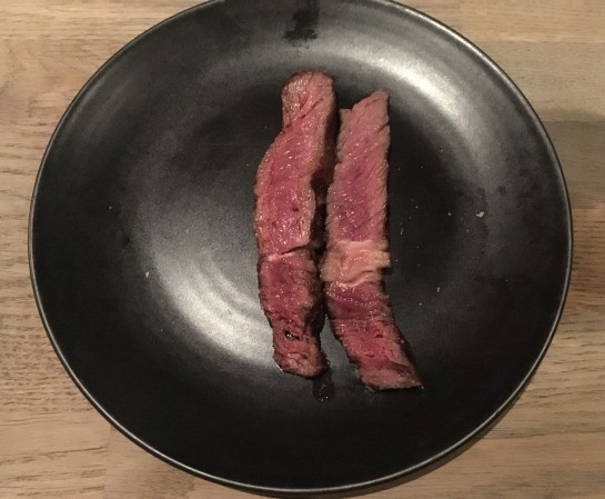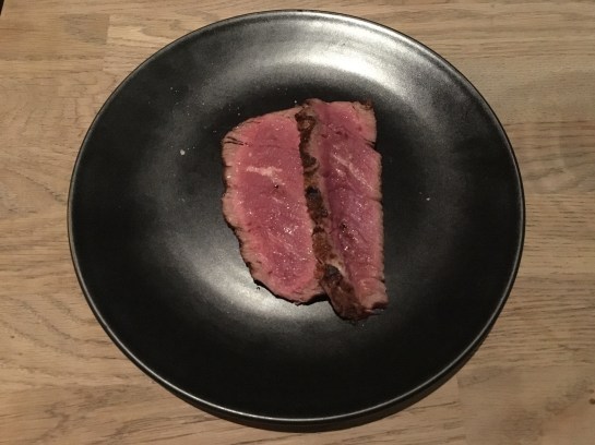 First up, Becca introduced us to the rump steak accompanied by red wine ‘Le Bosq’ a smooth, fruity wine easy on the palette for sipping away at, it complimented the rare-medium cooked rump beautifully. The flame-grilled char of the sides of the steak were a smokey contrast to the succulent inner more rare part of the steak, it was heaven to eat a steak cooked so well.
