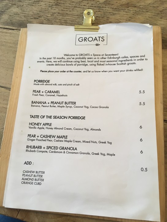 Gourmet porridge? I hear you ask, well yes, the absolutely most delicious porridge of its kind! It was my good friend Sophie over at Life with Clarity, that first mentioned Groats to me and her love for their porridge. Fortunately for me, I was then invited to Cafe Milk in Leith to try a combination of Graham’s gold full cream milk and Groats aphrodisiac porridge around Valentine’s Day and I’ve been desperate to consume their delicious porridge combinations ever since!