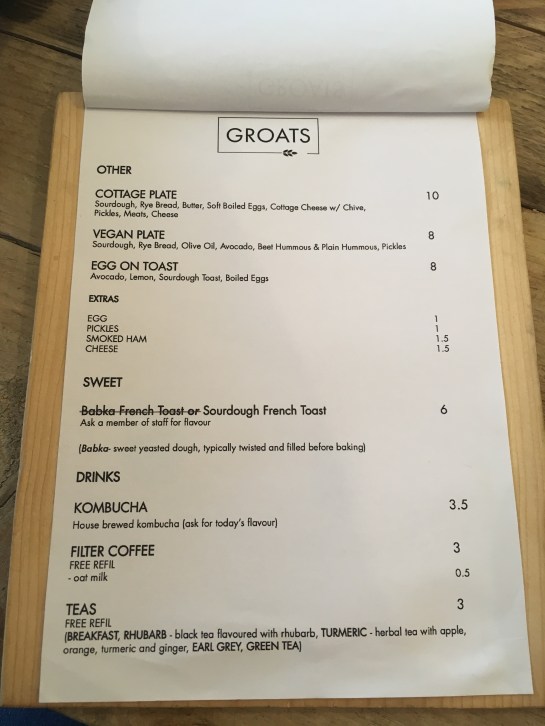 I first had to decide on what to drink, with this being a pop-up (only available until the end of May, so get there fast) they only have filter coffee on offer, accompanied with oat milk if you wish (I’m currently loving it in my coffee), there’s a selection of teas with free refills on both, and something that caught my eye, called kombucha. The lovely server explained to me that it was fermented tea and today’s flavour was orange and grapefruit. I had to try it! It was like starting the day with a mini mocktail, so refreshing with a subtle sour aftertaste, I loved it!