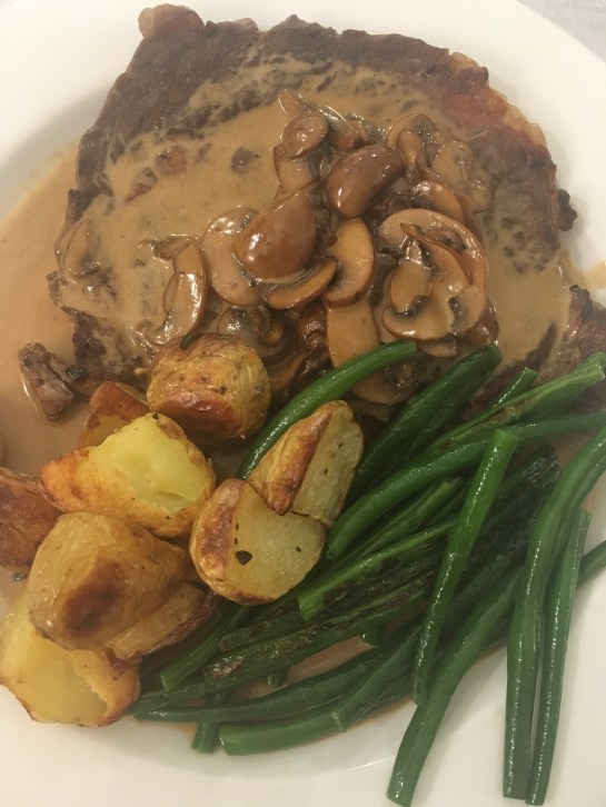 I sautéed the mushrooms before adding the Whisky sauce ingredients. We also blanched our green beans then gently sautéed them for maximum flavour and colour.