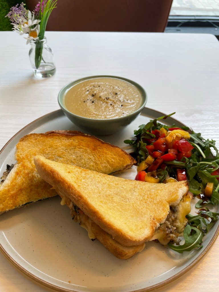 My lunch was simply delicious, just what I was after. A very high standard vegetarian option which can also be made vegan with vegan cheese and gluten free options are available. I opted for the sourdough veggie haggis, mango jam & cheese toastie with a welcome addition of a rocket pepper balsamic salad. I chose to add a half portion of soup of the day, spiced parsnip & coconut. I thoroughly enjoyed my lunch, my only suggestion is removing lettuce in the toastie itself as it was a bit soggy. Admittedly it was hard to choose from the list of attractive toastie fillings from halloumi, red onion, tomato & sweet chilli mayo to chicken, chorizo, mozzarella & chipotle sauce, I was spoilt for choice!