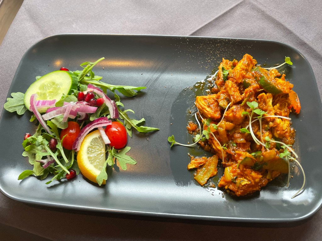 To start, I was originally going to go for Cilantro’s Special Chicken Chilli – small pieces of chicken tikka cooked with tomatoes & naga chillies in a hot and very spicy special sauce enhanced by fresh cilantro leaves. However, Mohammed saved me from myself by offering the Murghi Chatt as an alternative, as although I like to think I can handle spicy flavours, it sounds like my original choice was next level! It’s good to have variety, from spicy to mild to vegetarian, fish and meat options so everyone’s preferences are catered for here and flavour is not compromised.
