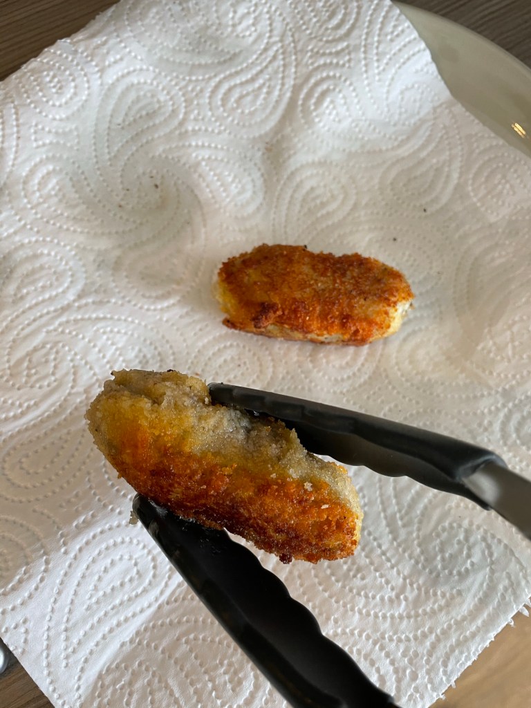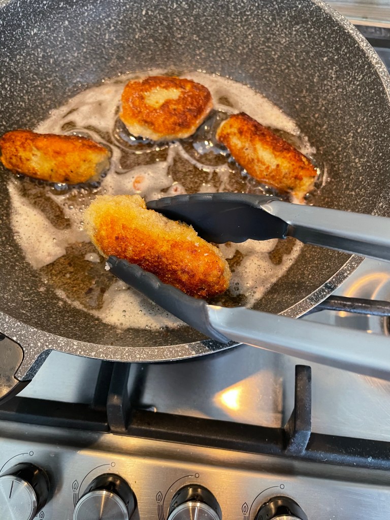 5. Heat enough oil in a large pan to turn the croquettes and deep fry until golden brown.